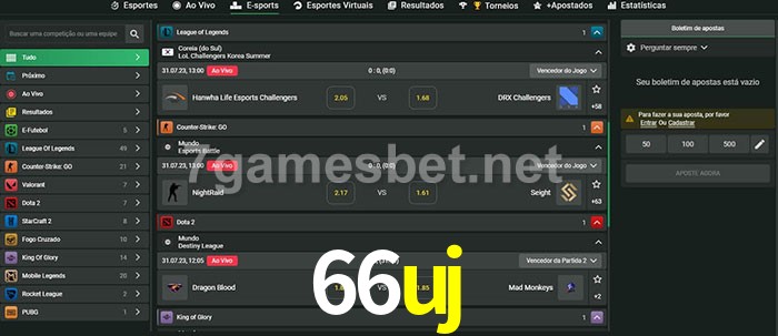 O 66uj oferece uma grande seleção de opções de apostas em e-sports com probabilidades competitivas